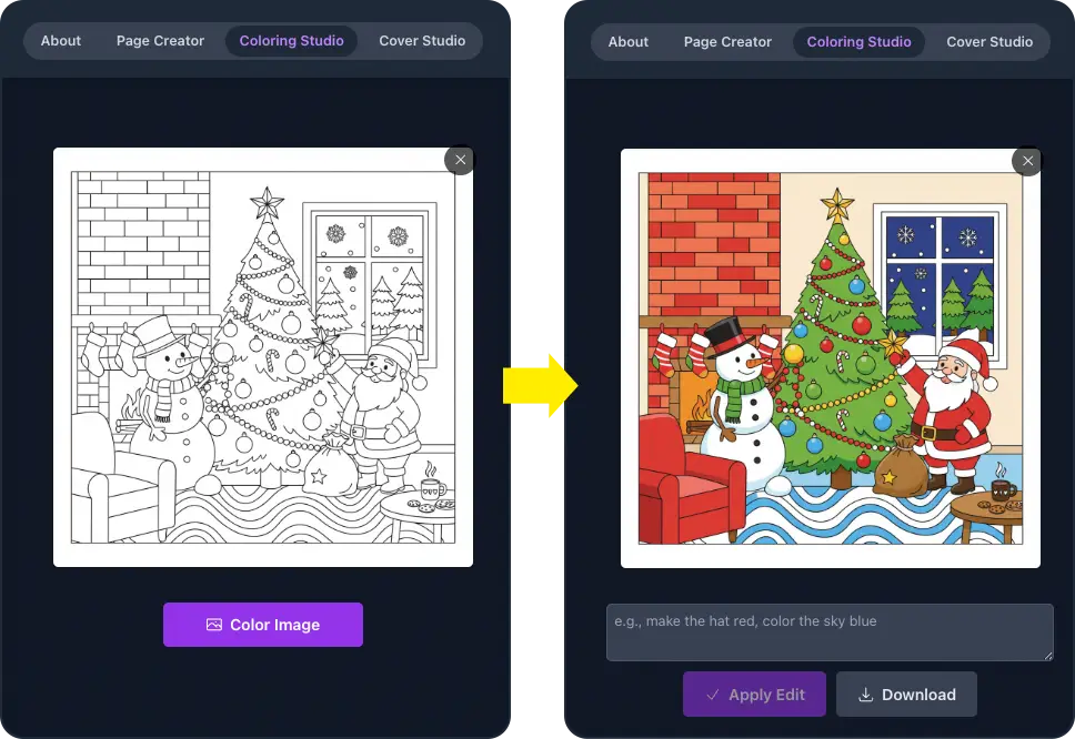 With ColorBookGem, she no longer needs prompts — just a few simple words to instantly create tons of coloring pages with consistent characters and themes — all high quality. And she can edit any page she wants.