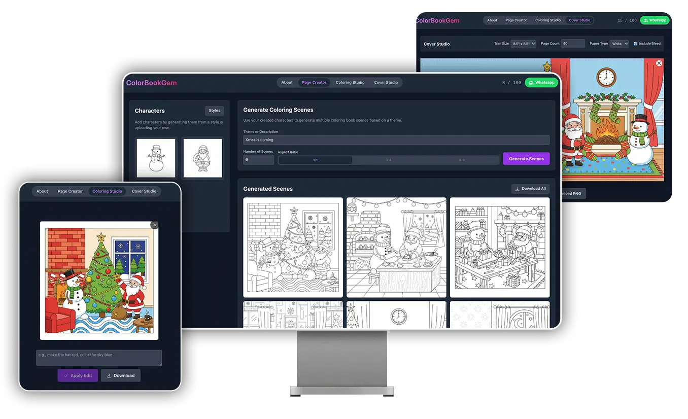 ✨ Scenario 1: Christmas is coming, and you want to create 10 coloring books to capture the amazing holiday demand. If you start manually, you’d need at least 3–5 days to finish one 60-page coloring book (with 30 coloring pages). That means it would take 1–2 months to finish 10 books. But with ColorBookGem, you can make 3–5 books a day. With focus, you can complete all 10 books in just 2–3 days. The rest of your time can go toward marketing or other valuable work.