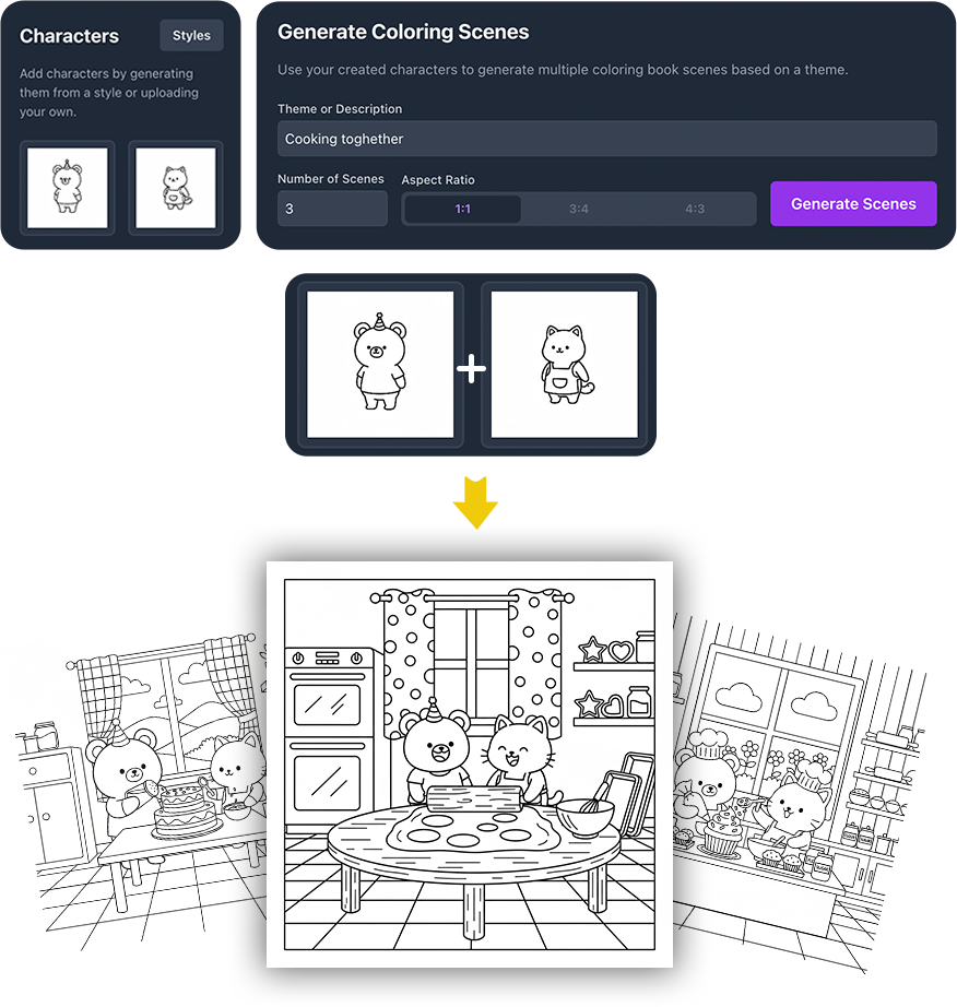 In just 10 minutes, you can generate a full set of images for one complete coloring book.